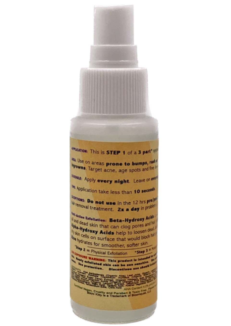 Is your skin sensitive and yet stubborn at the same time? Hair removal can cause rash, bumps or ingrown hair. The key to elimination and prevention of these issues is effective exfoliation. AHAs & BHA work from above and below skin's surface. This blend of powerful, natural ingredients will also address discoloration on thighs & underarms, lighten sunspots and treat acne.